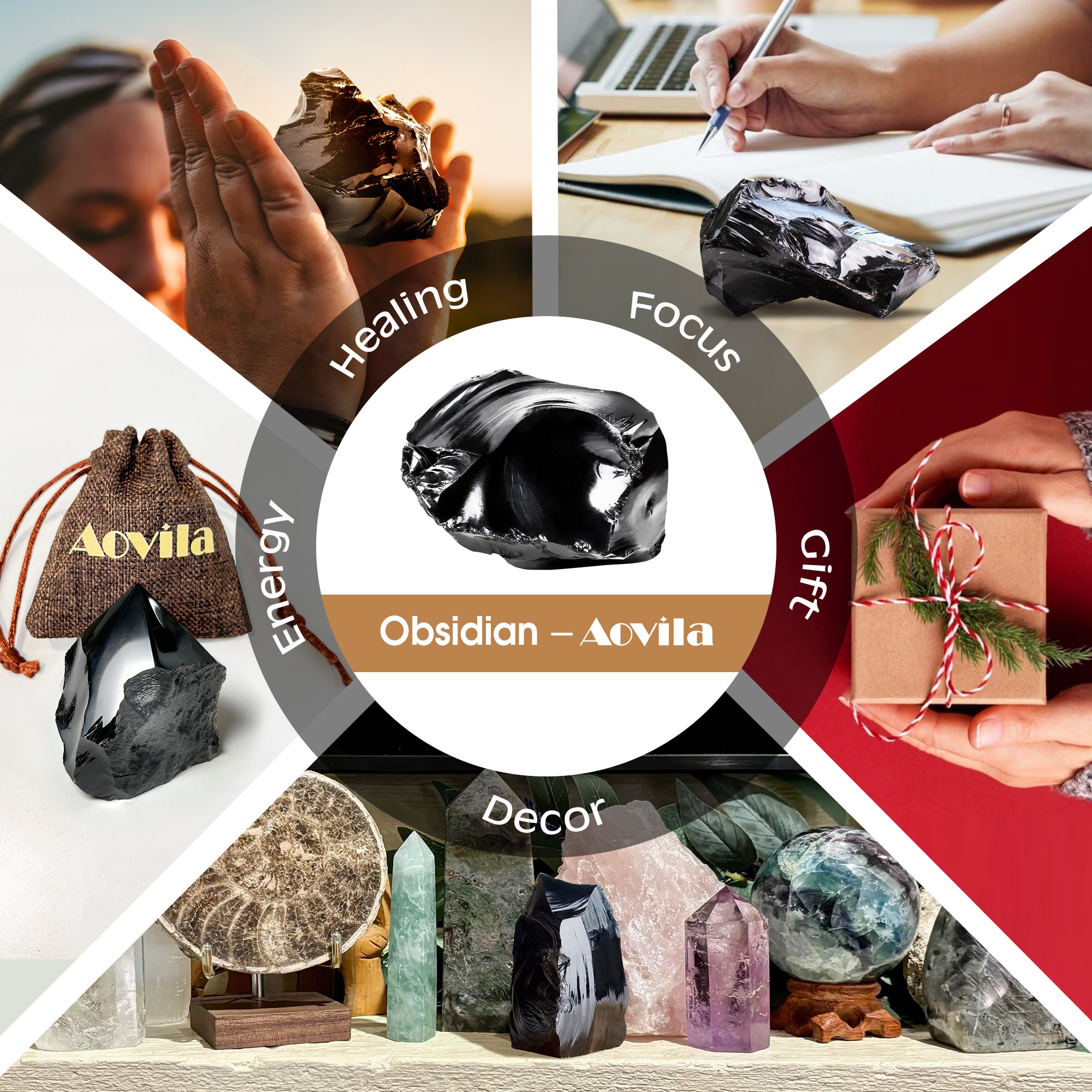 AOVILA Natural Black Obsidian Raw Crystals 1.6-2"